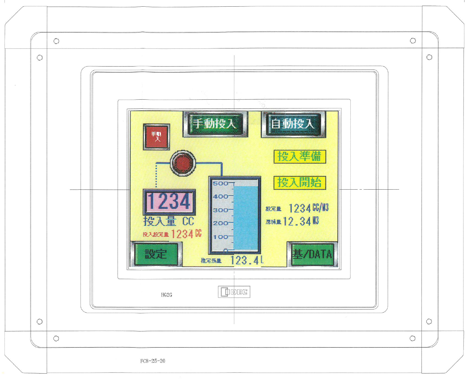 自立型 タッチパネル方式バッチャー操作盤の主画面